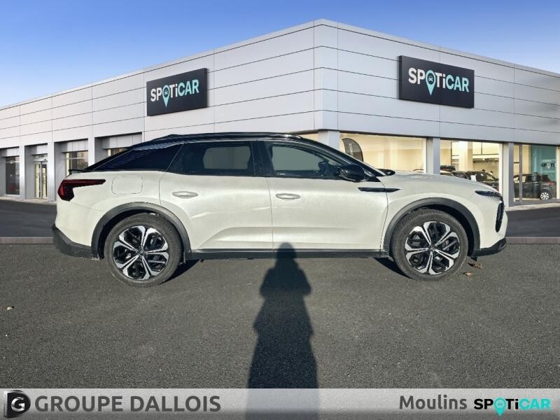 Equipements : Barres de toit, Blanc Nacré (N) - Toit Noir Perla Nera, 8 Haut parleurs, ABS, Accoudoir central AR avec trappe à skis, Accoudoir central AV avec rangement, Affichage tête haute, AFIL, Aide au démarrage en côte, Aide au freinage d'urgence, Airbag conducteur, Airbag passager, Airbag passager déconnectable, Airbags latéraux avant, Airbags rideaux, Allumage des phares automatique, Appel d'Assistance Localisé, Appel d'Urgence Localisé, Arrêt et redémarrage auto. du moteur, Assistance de maintien de trajectoire, Bacs de portes arrière, Bacs de portes avant, Banquette 1/3-2/3, Banquette arrière 3 places, Boite à gants fermée, Câble recharge Mode 2, 6 m, Caméra de recul, Caméra vue panoramique 360°, Capteur de pluie, Chargeur embarqué 3,7 kW monophasé , Clim automatique bi-zones, Commandes du système audio au volant, Cuir Noir avec perforations chevrons , Démarrage sans clé, Détecteur de sous-gonflage, Eclairage au sol, Eclairage statique d'intersection, Ecran tactile, ESP, Feux arrière à LED, Feux de freinage d'urgence, Feux de jour à LED, Fixations Isofix aux places arrières, Follow me home, Fonction MP3, Freinage automatique d'urgence, Frein stationnement électrique automatiq, Interface Media, Jantes Alu, Kit mains-libres Bluetooth, Lunette arrière surteintée, Miroir de courtoisie conducteur éclairé, Miroir de courtoisie passager éclairé, MyCitroën Drive Plus Ecran tactile 12", Ouverture des vitres séquentielle, Ouverture du coffre mains-libres, Palettes changement vitesses au volant, Pédalier sport, Phares antibrouillard LED, Phares avant LED, Plafonnier central AV et AR à LED, Poches d'aumonières, Poignées ton carrosserie, Porte-gobelets arrière, Prise 12V, Prise USB, Radar de stationnement AR, Radar de stationnement AV, Radio numérique DAB, Rails de coffre, Reconnaissance panneaux de signalisation, Régulateur de vitesse adaptatif, Régulateur de vitesse et de distance, Répartiteur électronique de freinage, Rétroviseur intérieur électrochrome, Rétroviseurs dégivrants, Rétroviseurs électriques, Rétroviseurs ext. indexés à la marche AR, Rétroviseurs rabattables électriquement, Siège cond. avec réglage lombaire électr, Siège conducteur chauffant, Siège conducteur réglable en hauteur, Siège passager chauffant, Siège passager réglable en hauteur, Suspension à amortissement piloté, Système avancé de détection d'obstacles, Système d'accès sans clé, Système d'éclairage intelligent, Système de contrôle des angles morts, Système de détection de somnolence, Système de prévention des collisions, Système de prévention des collisions AR, Système de sécurité post-collisions, Témoin de bouclage des ceintures AV, Verrouillage auto. des portes en roulant, Verrouillage centralisé à distance, Verrouillage centralisé des portes, Vitrage latéral feuilleté, Vitres arrière électriques, Vitres arrière surteintées, Vitres avant électriques, Vitres teintées, Volant chauffant, Volant réglable en profondeur et hauteur