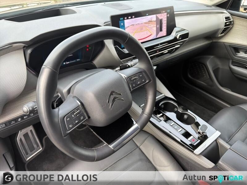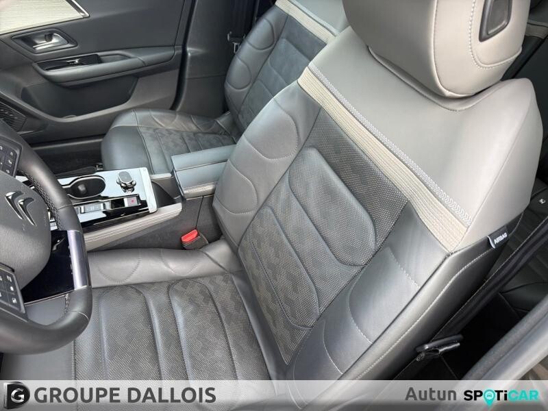 Equipements : 8 Haut parleurs, ABS, Accoudoir central AR avec trappe à skis, Accoudoir central AV avec rangement, Affichage tête haute, AFIL, Aide au démarrage en côte, Aide au freinage d'urgence, Airbag conducteur, Airbag passager, Airbag passager déconnectable, Airbags latéraux avant, Airbags rideaux, Allumage des phares automatique, Appel d'Assistance Localisé, Appel d'Urgence Localisé, Arrêt et redémarrage auto. du moteur, Assistance de maintien de trajectoire, Bacs de portes arrière, Bacs de portes avant, Banquette 1/3-2/3, Banquette arrière 3 places, Boite à gants fermée, Câble recharge Mode 2, 6 m, Caméra de recul, Caméra vue panoramique 360°, Capteur de pluie, Chargeur embarqué 3,7 kW monophasé , Clim automatique bi-zones, Commandes du système audio au volant, Cuir Noir avec perforations chevrons , Démarrage sans clé, Détecteur de sous-gonflage, Eclairage au sol, Eclairage statique d'intersection, Ecran tactile, ESP, Feux arrière à LED, Feux de freinage d'urgence, Feux de jour à LED, Fixations Isofix aux places arrières, Follow me home, Fonction MP3, Freinage automatique d'urgence, Frein stationnement électrique automatiq, Interface Media, Jantes Alu, Kit mains-libres Bluetooth, Lunette arrière surteintée, Miroir de courtoisie conducteur éclairé, Miroir de courtoisie passager éclairé, MyCitroën Drive Plus Ecran tactile 12", Ouverture des vitres séquentielle, Ouverture du coffre mains-libres, Palettes changement vitesses au volant, Pédalier sport, Phares antibrouillard LED, Phares avant LED, Plafonnier central AV et AR à LED, Poches d'aumonières, Poignées ton carrosserie, Porte-gobelets arrière, Prise 12V, Prise USB, Radar de stationnement AR, Radar de stationnement AV, Radio numérique DAB, Rails de coffre, Reconnaissance panneaux de signalisation, Régulateur de vitesse adaptatif, Régulateur de vitesse et de distance, Répartiteur électronique de freinage, Rétroviseur intérieur électrochrome, Rétroviseurs dégivrants, Rétroviseurs électriques, Rétroviseurs ext. indexés à la marche AR, Rétroviseurs rabattables électriquement, Siège cond. avec réglage lombaire électr, Siège conducteur chauffant, Siège conducteur réglable en hauteur, Siège passager chauffant, Siège passager réglable en hauteur, Suspension à amortissement piloté, Système avancé de détection d'obstacles, Système d'accès sans clé, Système d'éclairage intelligent, Système de contrôle des angles morts, Système de détection de somnolence, Système de prévention des collisions, Système de prévention des collisions AR, Système de sécurité post-collisions, Témoin de bouclage des ceintures AV, Verrouillage auto. des portes en roulant, Verrouillage centralisé à distance, Verrouillage centralisé des portes, Vitrage latéral feuilleté, Vitres arrière électriques, Vitres arrière surteintées, Vitres avant électriques, Vitres teintées, Volant chauffant, Volant réglable en profondeur et hauteur